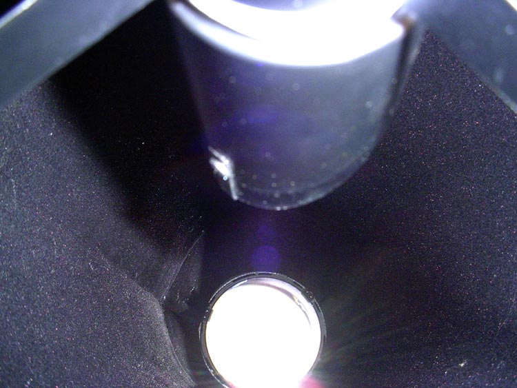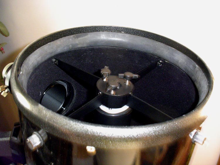 Here you can see the barrel with the flocking installed. The seam is to the left, and you can see where two pieces are joined towards the base. That's the secondary mirror at the top.